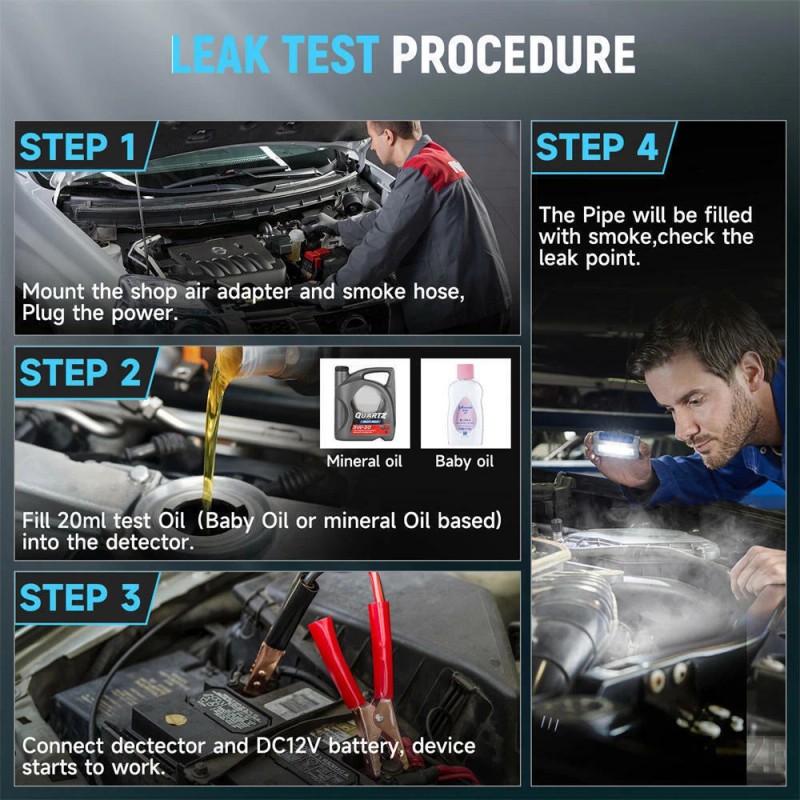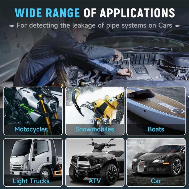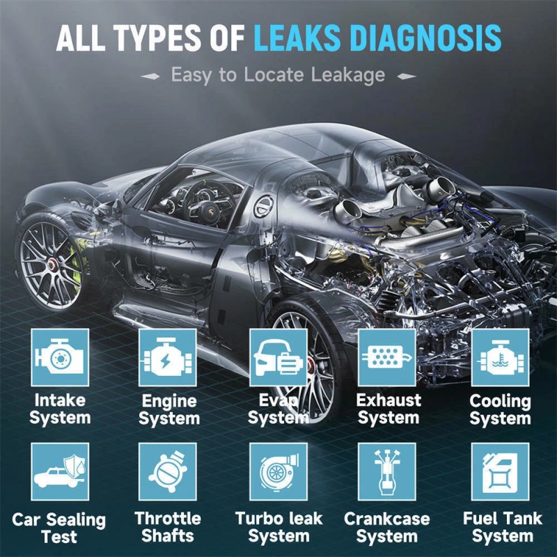 • Supported System: Intake System Test, Exhaust Systems Test, Car Sealing Test, Fuel Tank System Test, EVAP System Test, Crankcase System Test, Various Pipe Fittings Test