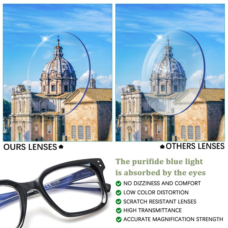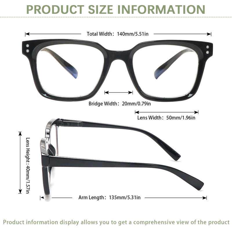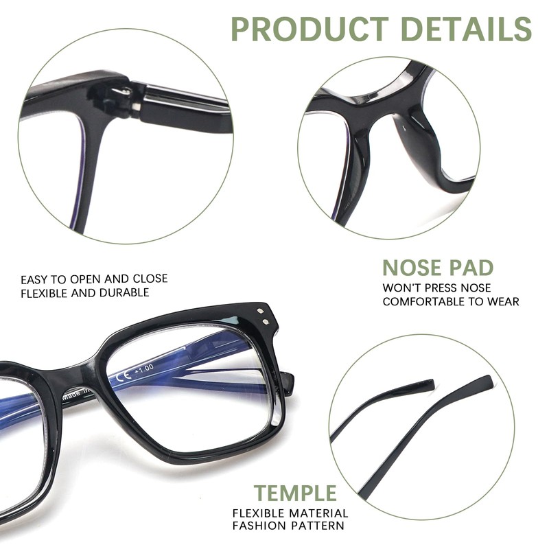 - Reading Glasses:Reading Glasses With Ultra Clear Glasses Lenses Have UV400 Protection And Blue Light Blocking Effect, Easily Filter Blue Ray, Relieves Eye Strain And Migraines, Creating A Comfortable Reading Environment.