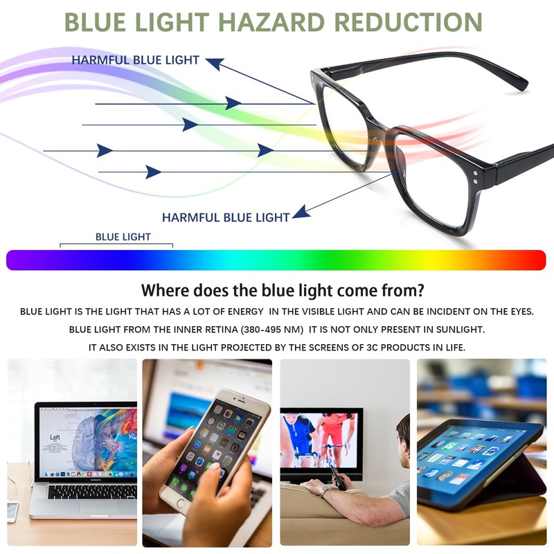 It is to protect the health of our eyes! Nowadays, we face electronic screens almost every day, and harmful blue light floods our lives, it will make us suffer from eyestrain, dry eyes, headaches and other problems. Therefore, it's time to own a pair of anti-blue light reading glasses!