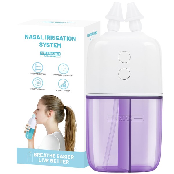 Nasal Irrigation System with Dual Speed and Auto Waste Collection – Portable and Travel-Friendly Nasal Irrigator – Nasal Cleaner for Sinus Relief Nasal Rinse Machine for Allergy and Sinus Care Purple