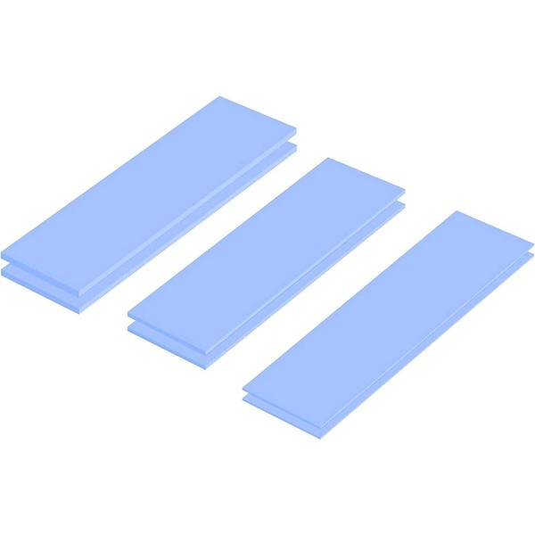 Rongdeson サーマルパッド 経済型6パック 3種類の厚さ 熱暴走対策 冷却ラジエーターフィン 両面放熱シリコーンパッド 熱伝導性6.0 W/mk 軟らか材質 SSD CPU GPU LED ICチップセット冷却用 ブルー