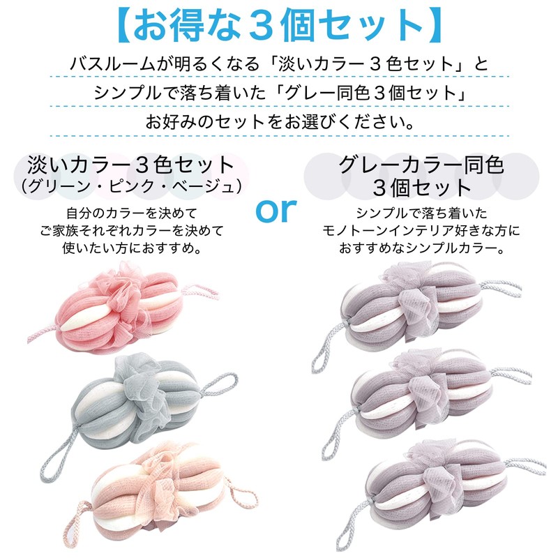 - Value Set of 3: Light colors to brighten up your bathroom (3 color set) (green, pink, beige). Recommended for those who want to use them for their family members by determining their own color. This set of 3 white pieces is perfect for those who like monotone decorations. The body washing net also comes in black and white. Recommended for those who want to stay chic in their bathroom