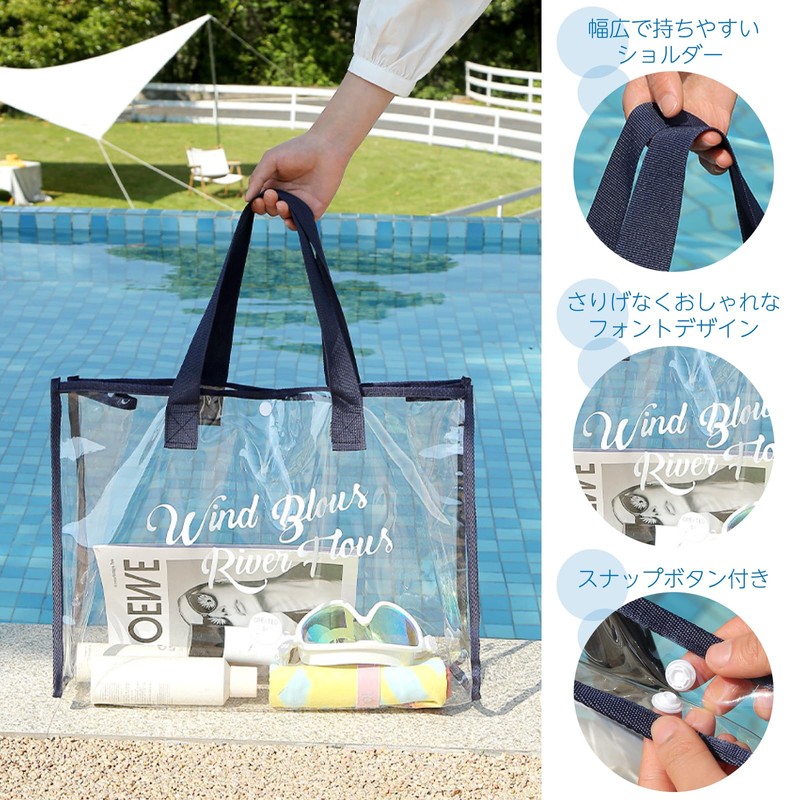 RONGUI Plastic Bag, Transparent Pool Bag, For Adults, Girls, Beach Bag, Large, Clear Bag, Swimming, navy