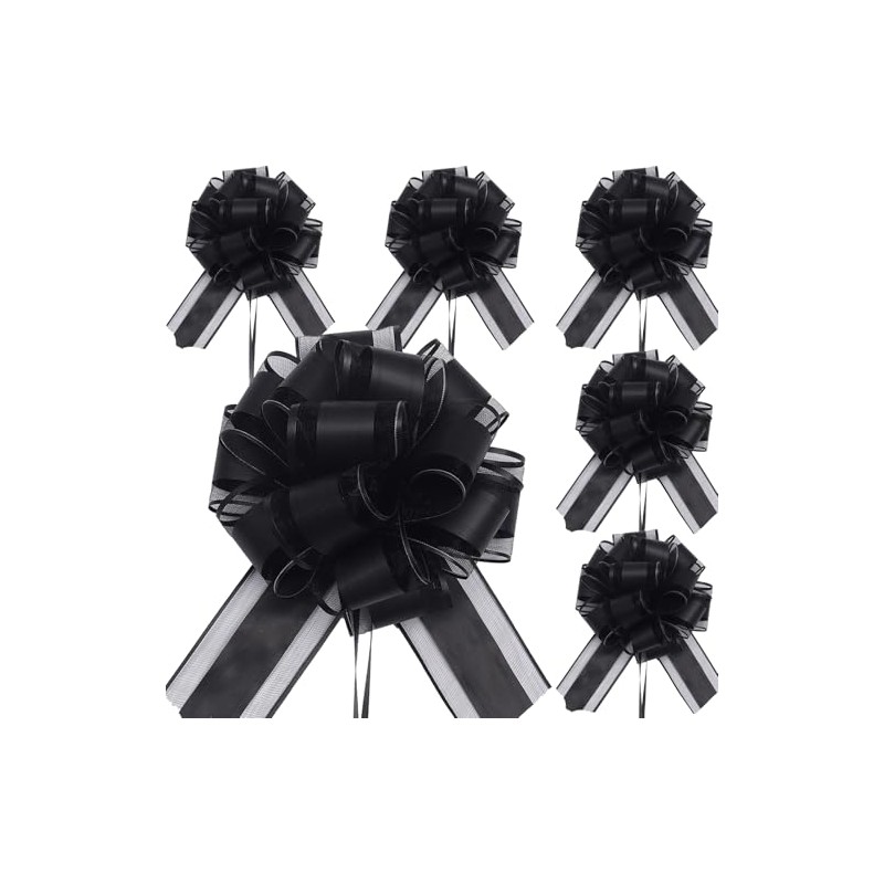 RONGZUBAT 6pcs 7inch Large Pull Bows Wrapping Pull Bow Ribbon Black,Black Ribbon Pull Bows Gift Wrap Bows for Gift Wrapping Baskets Wedding,Valentine's,Birthday Gift,Christmas,Flower,Car Wrapping Bow