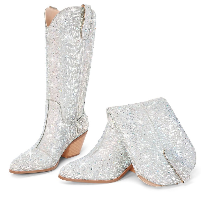 - 【HIGH QUALITY MATERIAL】These boots made with high-quality materials for durability and long-lasting use. Improved rhinestone paste craft to ensure that the rhinestones do not fall off.
