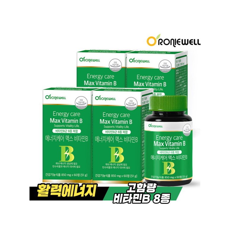 Roniwell Energy Care Max Vitamin B 60 tablets x 4 (total 8 months supply) / 로니웰 에너지케어 맥스 비타민B 60정 x 4개 (총 8개월분)