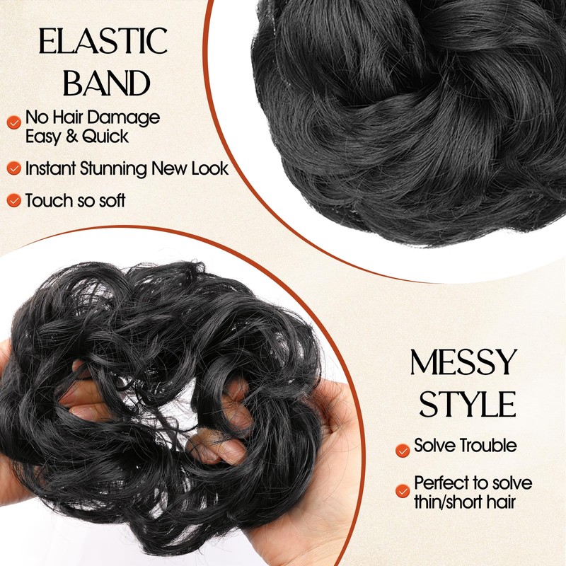- Premium Heat-Friendly Fibers: Crafted with Japanese heat-resistant synthetic fibers, these scrunchies blend seamlessly with natural hair for a flawless look. Each set includes 2 versatile pieces - layer them for voluminous glamour or wear individually for quick style swaps.