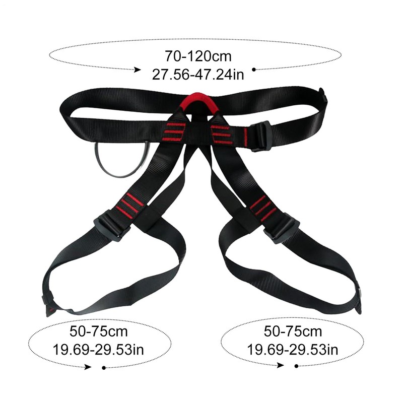 Designed for outdoor adventures this climbing harness features thickened polyester webbing that provides security during mountaineering rappelling and bouldering its breathable structure provides comfort for prolonged use catering to men and women of all skills from beginners to advanced users and serves as dependable gear for fire rescue and construction needs prioritizing user safety and adaptability.