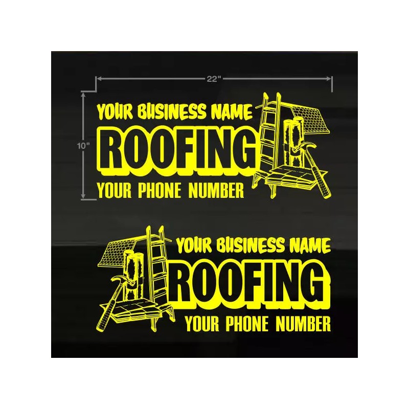 Roofing Roofer Set of 2 YOUR TEXT Door/Window LG 22X10" YELLOW Decal Stickers