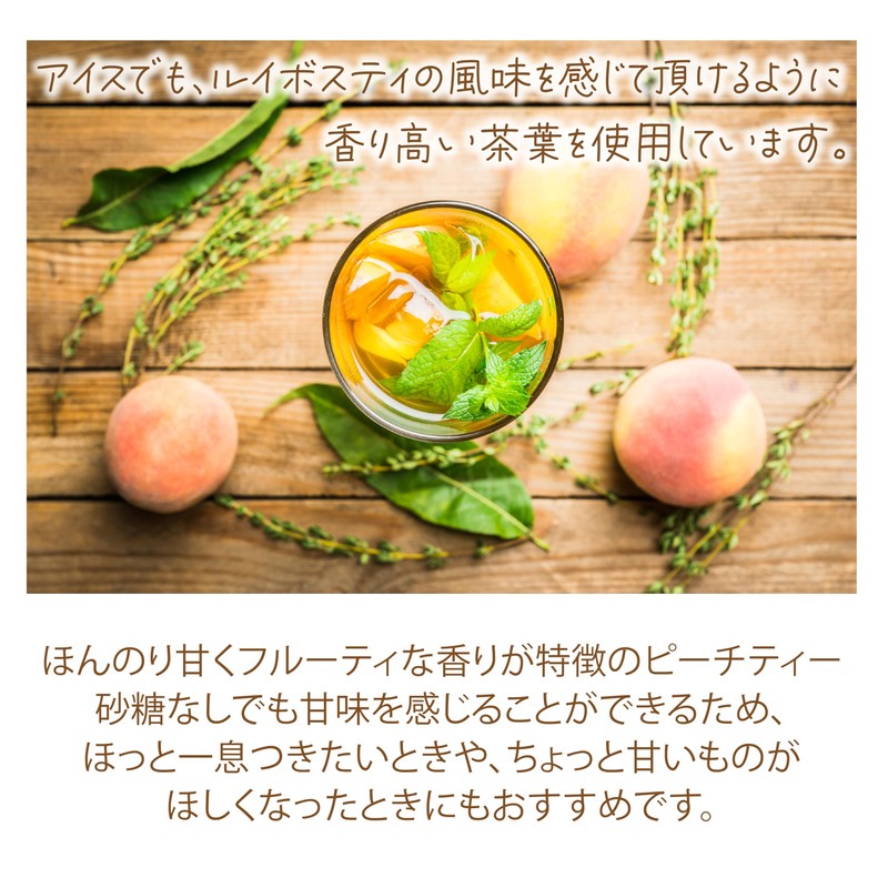 - A peach tea with a fluffy and sweet scent that heals your heart. Perfect for when you want to take a breath or relax Delicious peach and overflowing fruits are made with smooth powder, so there is no irresistible scent and gentle taste of Rooibos tea and peach. The fragrance of the rich peach has been given a healing time, and is blended with carefully selected tea leaves and sweet, aromatic peach powder. It is unsweetened but has a rich fragrance that gives you a sweet feeling