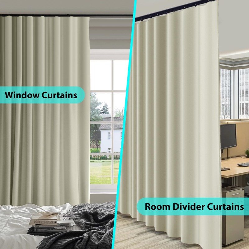 - ROOM DIVIDERS CURTAIN TRACK SET: includes 1 panel beige curtain (W144 x H96 in) and 1 piece black ceiling track and all required accessories,allowing you to quickly create a private space without buying additional track or wall construction