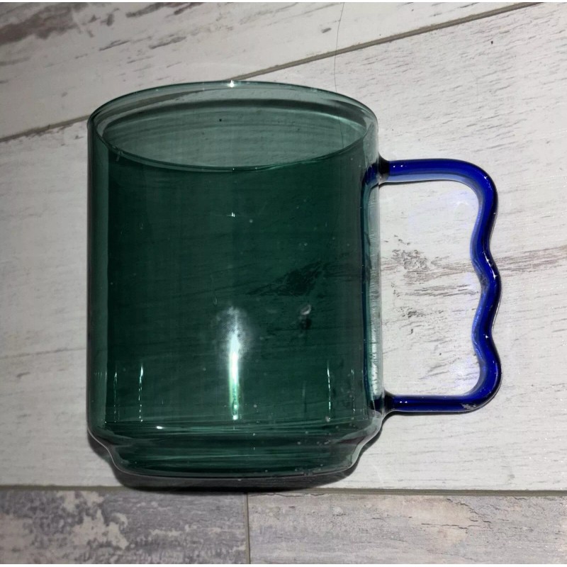 Room Essentials Glass Mug - Green with Blue Handle - 3.82”H x 4.49”W - NEW
