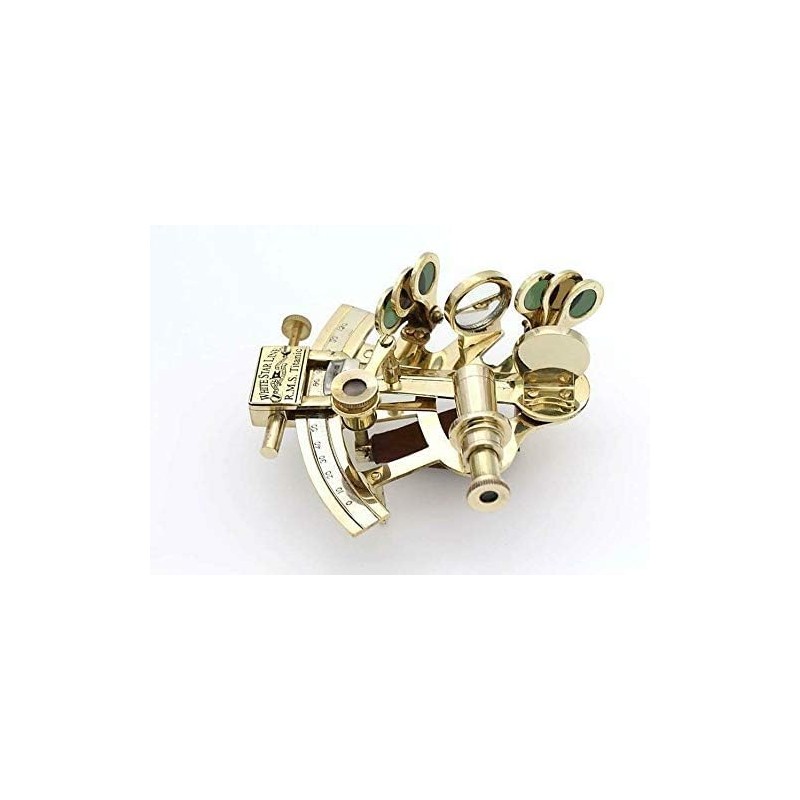 - Shiny brass sextant with glass lenses for a clear view (no plastic lenses).