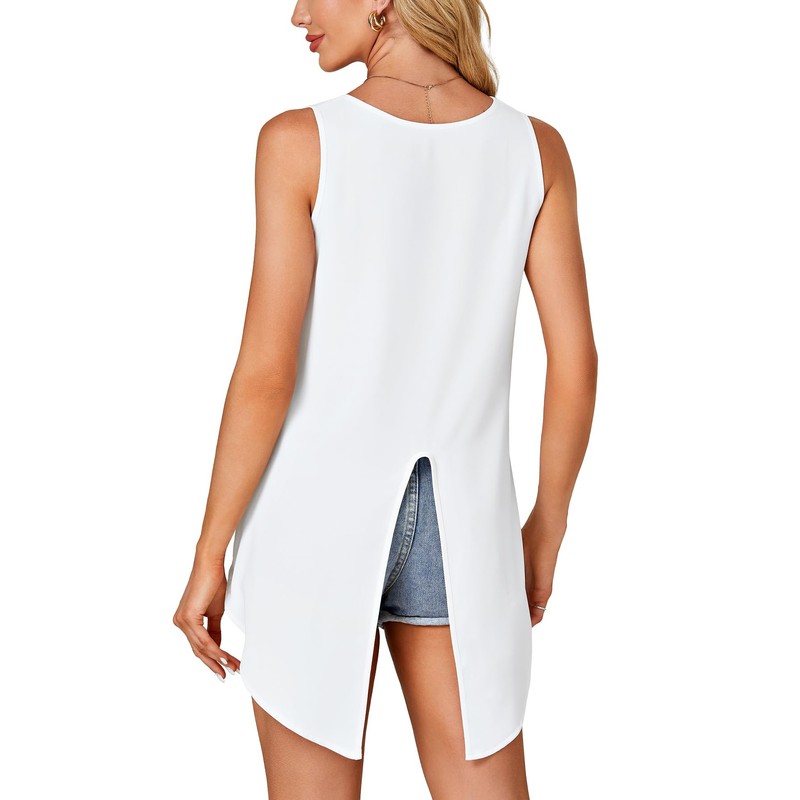 - Features: Loose fit cami tank top features with asymmetrical high-low hem, sleeveless, round neck, split back, dressy flowy style, causal style but absolutely flattering and versatile, makes you look chic and elegant.