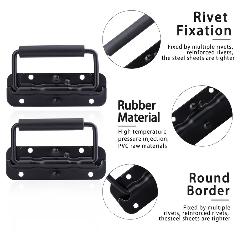 - Handle design: our metal folding handles are foldable and equipped with a black rubber handle cover that increases hand comfort, which can effectively reduce the pressure of the box and protect your hands from injury. Can effectively prevent static electricity.