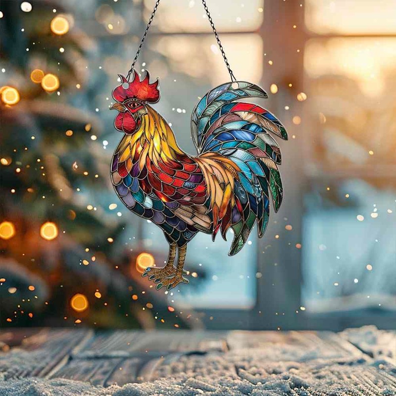 - ☘️ High-Quality Acrylic Construction☘️: Crafted from durable 3mm thick acrylic (a type of plastic, NOT GLASS). This Rooster hanging ornament offers options to fit any decorative need. Each ornament comes with a metal chain, sucker hook, and a decorative box, making it incredibly easy to hang and display in your preferred location.