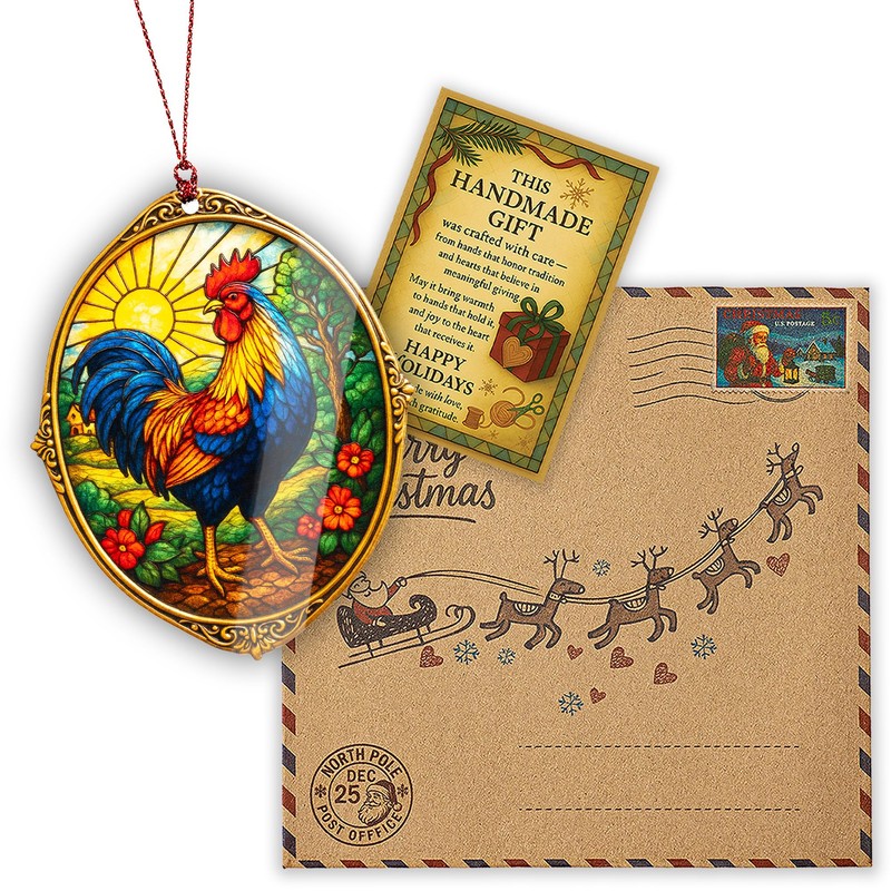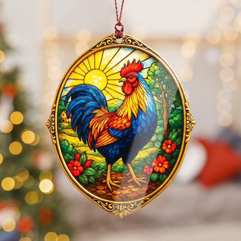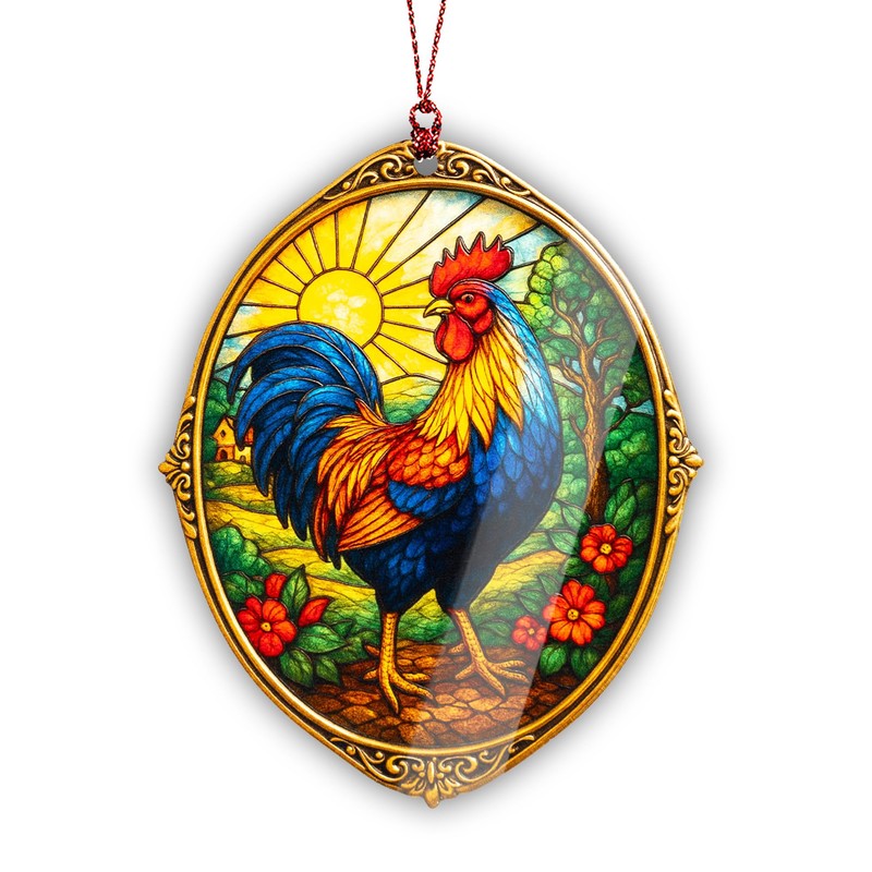 Rooster Ornament – Farmhouse Decor | Rustic Kitchen Ornament + Country Rooster Gift – Suncatcher Effect Stained Glass Window Hanging – Car Hanging Decoration