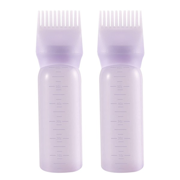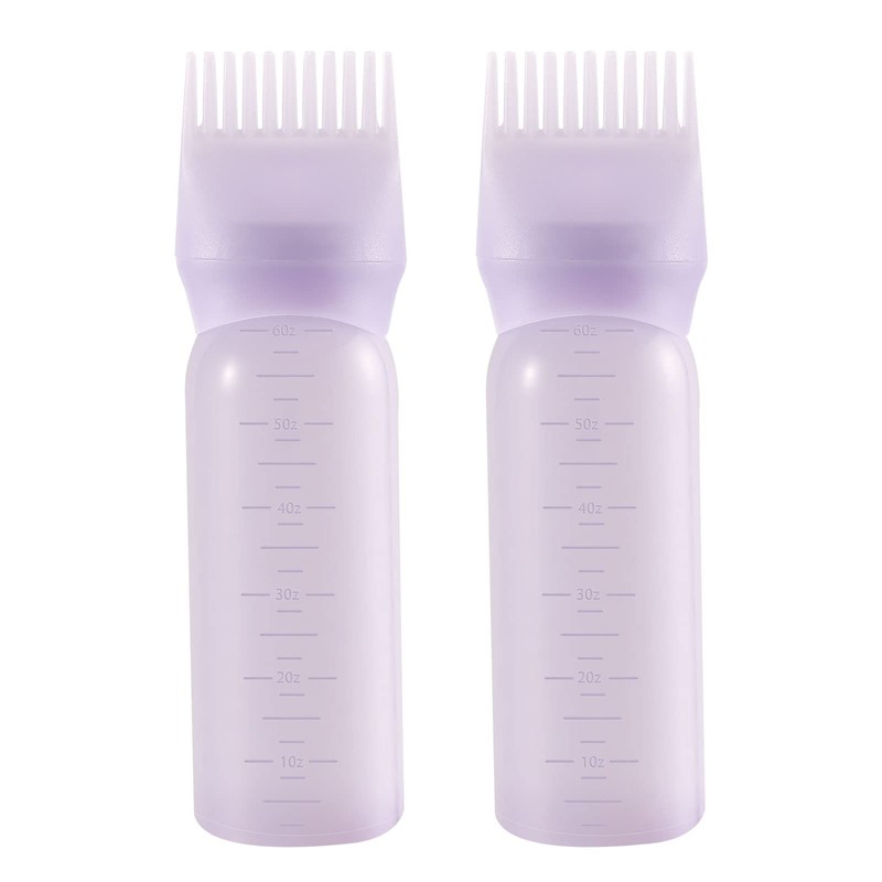 Pimoys Root Comb Applicator Bottle 6 Ounce Hair Oil Applicator 2 Pack Applicator Bottle for Hair Dye Bottle Applicator Brush with Graduated Scale, Purple