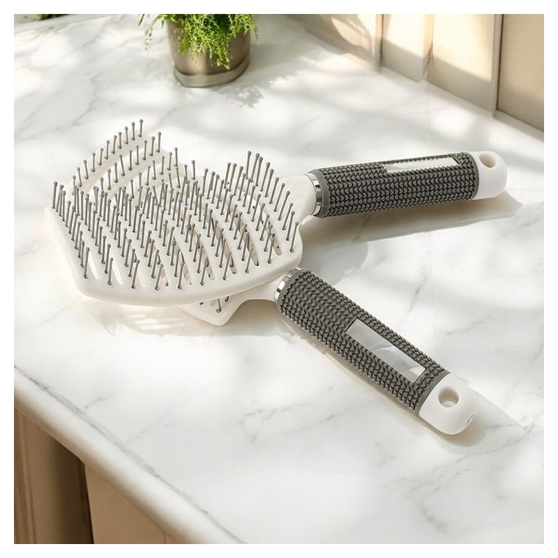Root Volume-Up Hair Brush 2-Piece Set (White) Dry Brush 19ea