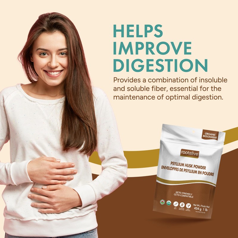 - Easily Incorporate Fibre Into Your Diet - Rootalive's organic psyllium husk powder is an excellent way to introduce both insoluble & soluble fibre into your diet for optimal digestive health.