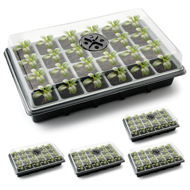 - 【With Transparent Lids】The 5 packs seedling starter trays also come with domes to keep the humidity level high and to ensure seed germination. The transparent lids provide a clear view of your sprouts' growth. The seeding starting trays are thoughtfully designed with touches like the transparent controllable vents that should make seedlings and cuttings very comfortable.