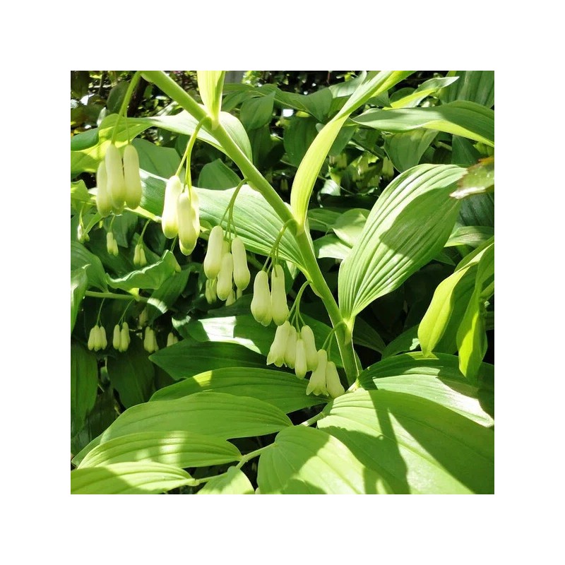 Solomon's Seal is edible and medicinal, the young edible shoots are an excellent vegetable when boiled and eaten like Asparagus. The root is edible after boiling in three changes of water or sun baked, and is a good source of starch. This herb has a long history of use in alternative medicine dating back to the time of Dioscorides and Pliny. The main constituents are saponins (similar to diosgenin), flavonoids, and vitamins. A medicinal infusion of root or rhizome, is used in alternative medicine as an astringent, demulcent, and tonic. The dried herb is taken as a laxative and restorative, and is good in inflammations of the stomach, indigestion, profuse menstruation, lung ailments, general debility, bowels, piles, and chronic dysentery. A medicinal poultice of the fresh roots is said to fade bruises, also applied to cuts and sores.