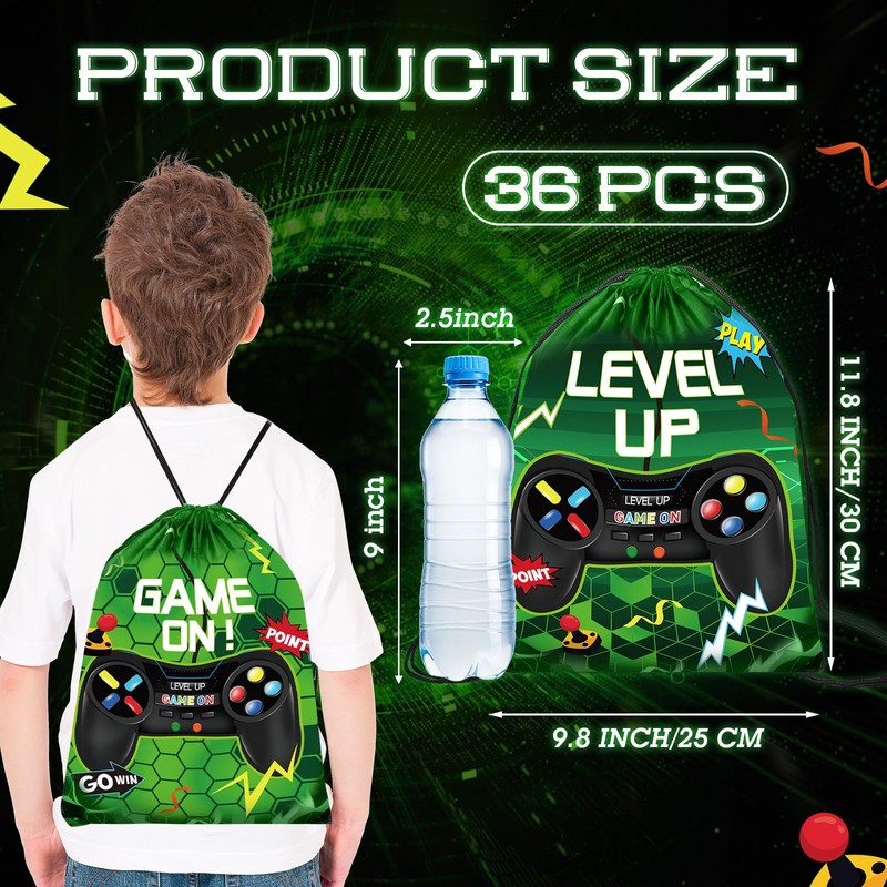 - Drawstring Backpack Size: these video game party favor bags measure about 30 x 25 cm/ 12 x 10 inches, large enough to hold your water bottle, cell phone, books, notebooks, game console, headphones, biscuits, candies, cookies, chocolates, small toys, party gifts and more, to bring you a good user experience