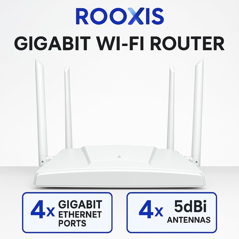 ROOXIS AC1200 | Gigabit WiFi Router | 4 x Gigabit Ethernet Ports | 4 x 5dBi Antennas | 5Ghz | Wireless VPN Router | Covers 2500 Sq ft | 1 Year Replacement & Accidental Warranty | 1200Mbps Fast Speed
