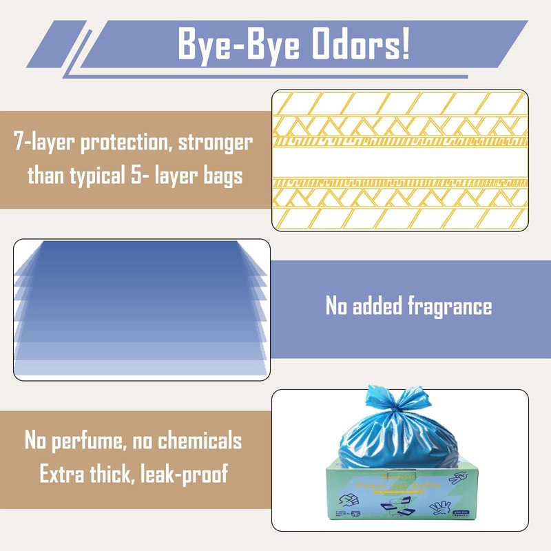 - 1. 7-LAYER ADVANCED ODOR-BLOCKING TECHNOLOGY – Made with an innovative, next-generation 7-layer multi-film material that’s not commonly found in other diaper pail refills. This upgraded film provides superior odor sealing performance without the need for added fragrances, keeping your baby nursery fresh and clean
