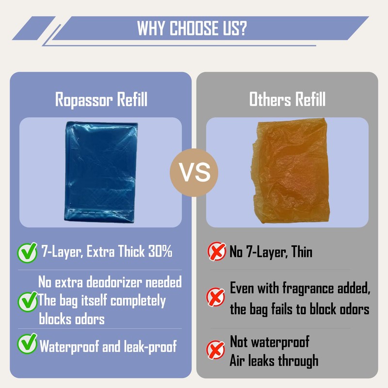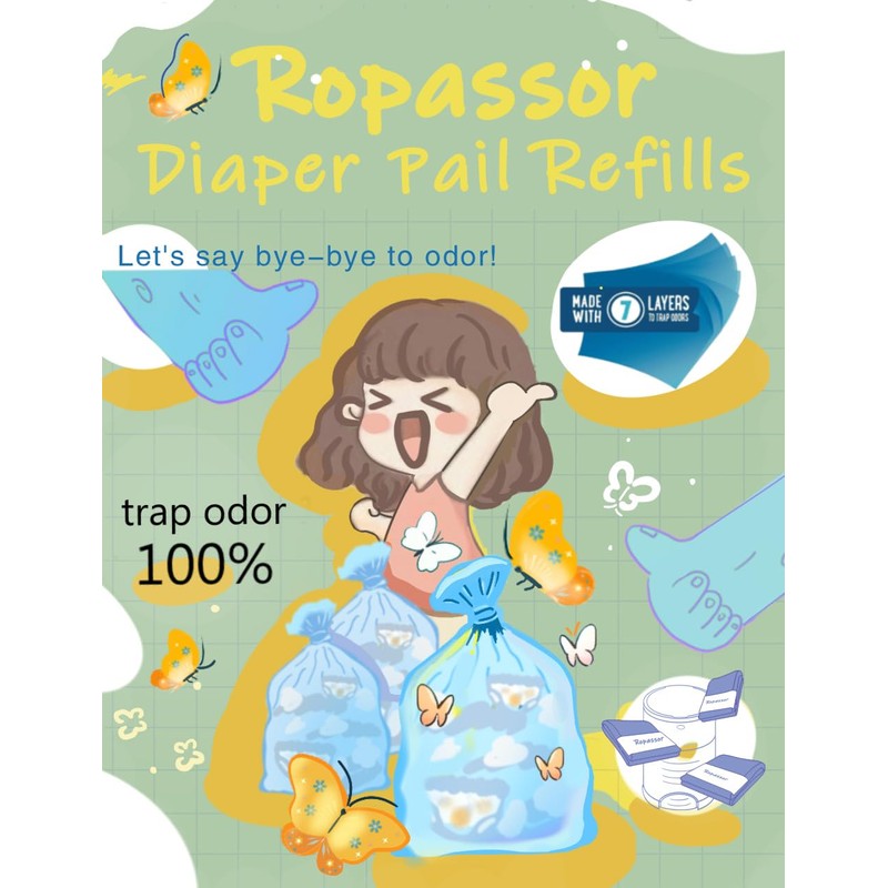 Ropassor Diaper Pail Refill Bags for Diaper Dekor Plus Diaper Pail (2400 count) 4 Packs, 7-Layer Odor-Absorbing Technology, 30% Extra Thickness, Disposable Diaper Trash Bags, Baby essentials