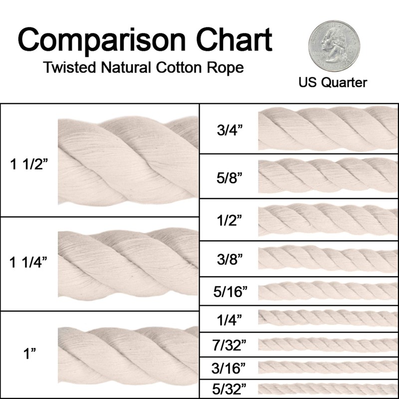 Rope and Cord White Twisted 100% Natural Cotton Rope – Lengths from 10’-600’ – 3/8"