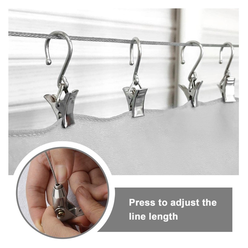 - Easy to install, the curtain rod is equipped with a 5 -meter -long wire, two brackets and other necessary accessories. The grip is good, so that you can easily carry curtains. The wire can be easily cut into the required length, so you can adjust it flexibly according to the window, terrace or balcony door.