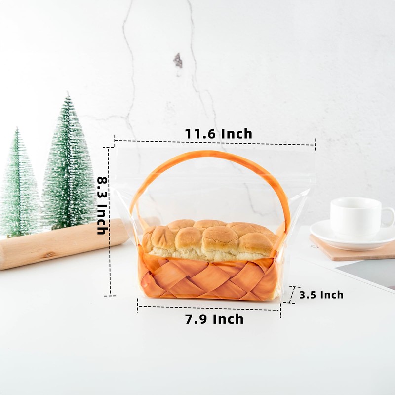 Roppolo 50 pcs 7.9 Inch Large Clear Bread Plastic Bags with Handle, Sealing Zipper Loaf Packaging with Basket Pattern for Homemade Bread Cookie, Bakery Cafe