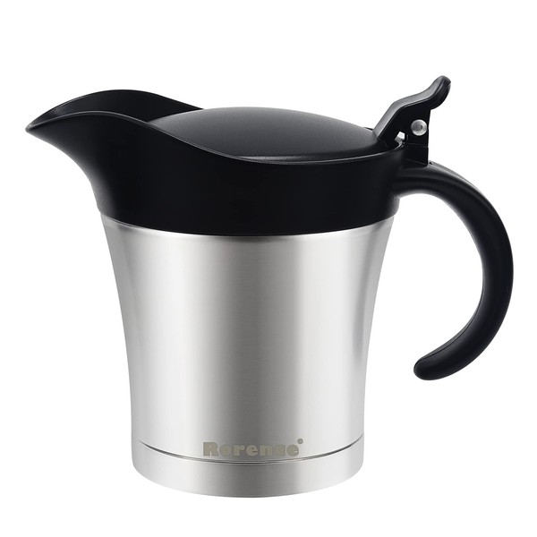 Rorence Stainless Steel Double Insulated Gravy Boat With Lid/Sauce Jug 16 Ounce Capacity