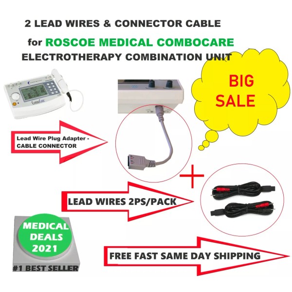 ROSCOE MEDICAL 3PS - 2 ELECTRODE LEAD WIRES & GREY CONNECTOR CABLE for ROSCOE MEDICAL COMBOCARE