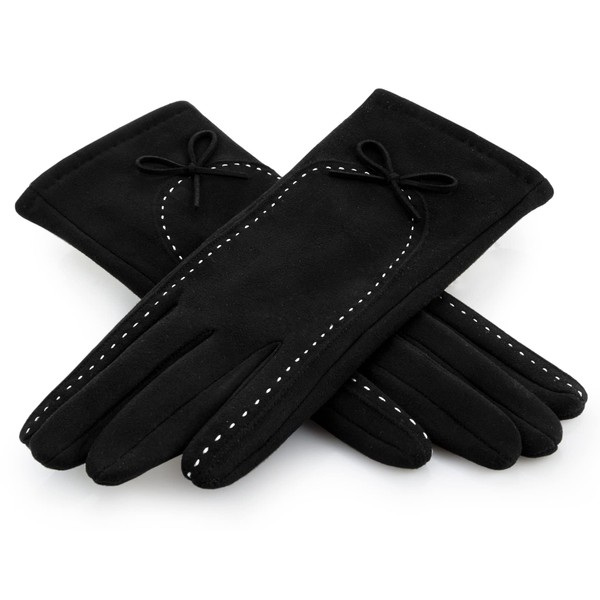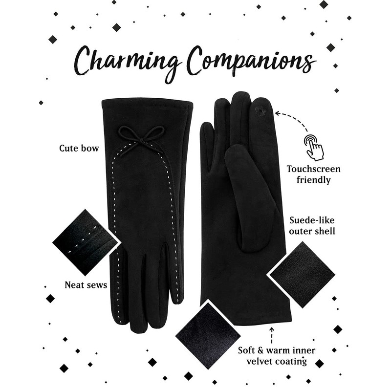 Rose Black Winter Gloves for Women - with Cute Bow - Finest Selection, Classic Black