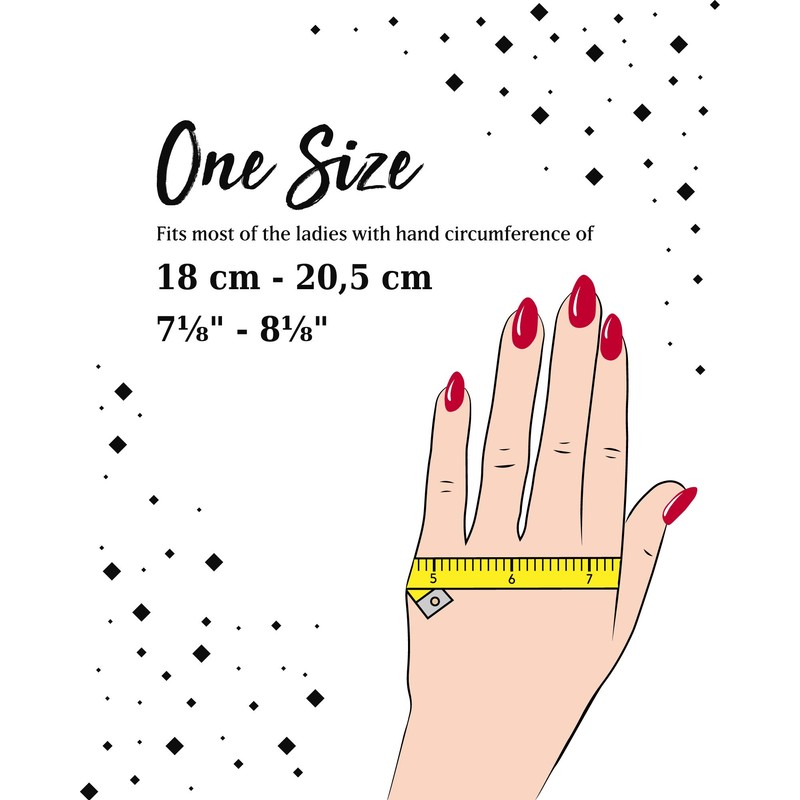 Stretchy properties make these hand warmers a classic one size for most women with a hand circumference of 17 cm to 20.5 cm.
