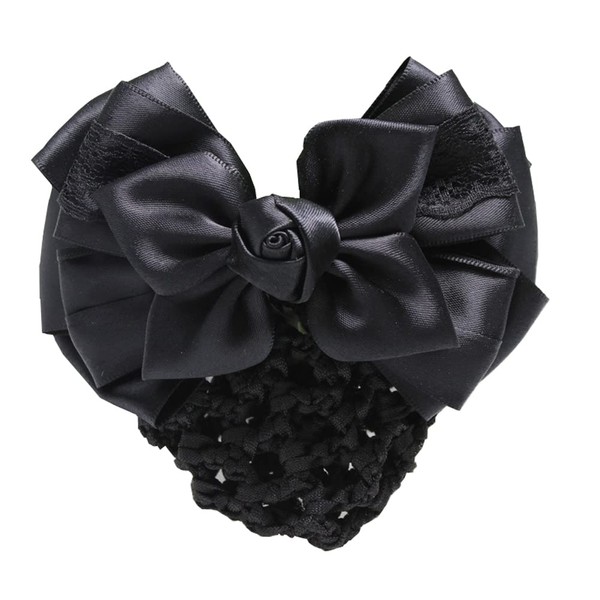 Rose Bowknot Hair Bun Clip Elastic Bowknot Hair Clips Bow Knot Hair Snood Net Professional Hair Bun Cover Hair Accessories for Women(Black)
