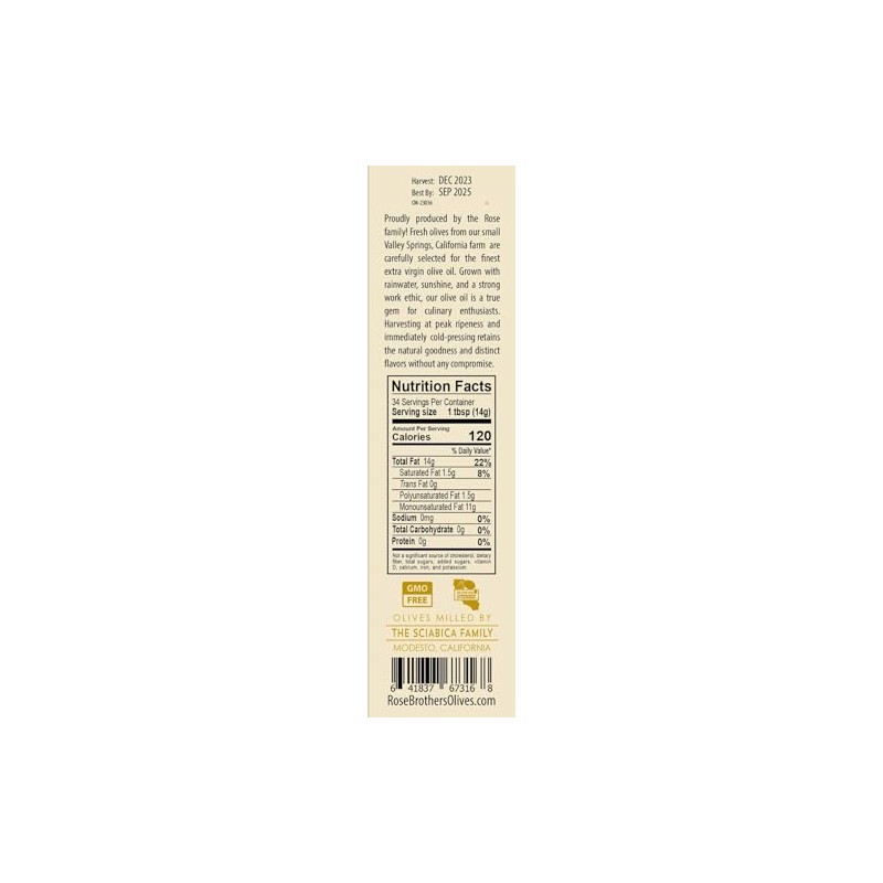 Rose Brothers Extra Virgin Unfiltered Cold Pressed California Olive Oil 500ml