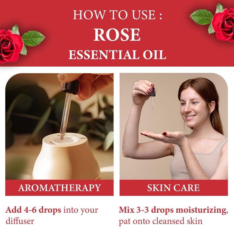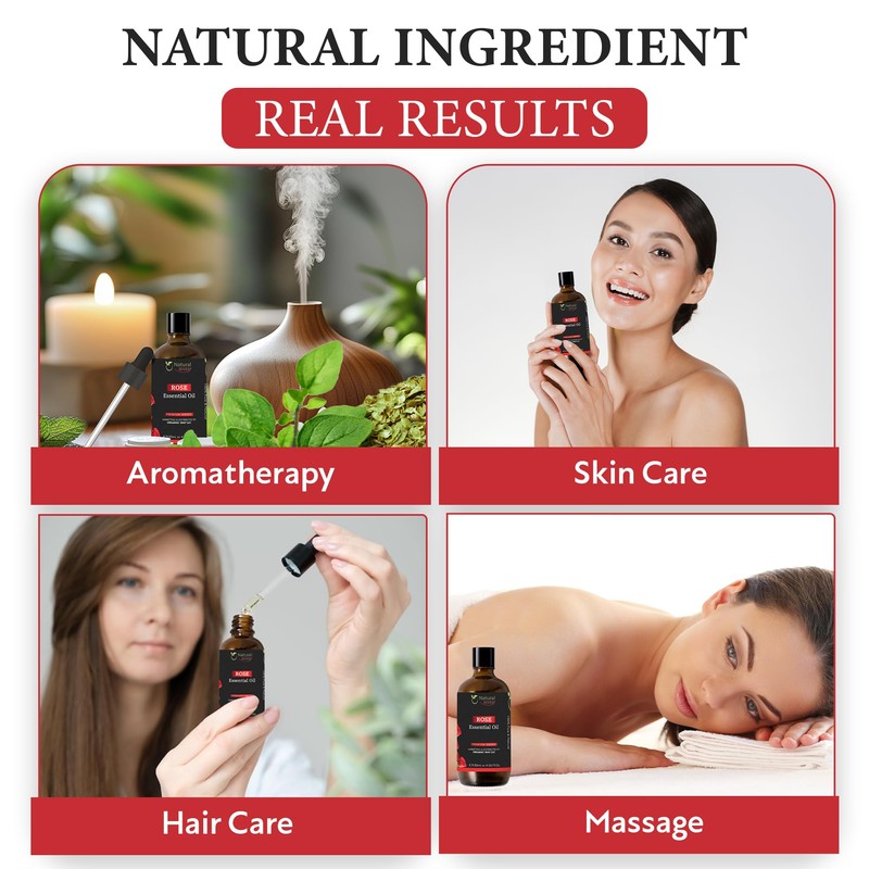 Rose Essential Oil | Pure Aromatherapy Oil for Diffusers, Hair Growth, Skin, Scalp Care, Massage | Refreshing Hair Oil for Women & Men | Organic Essential Oil for Diffuser | 4 Fl Oz (120 mL)