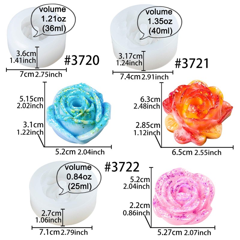 Rose Flower Straw Topper Epoxy Resin Silicone Molds 3-Count Large Diameter 2-2.6inch