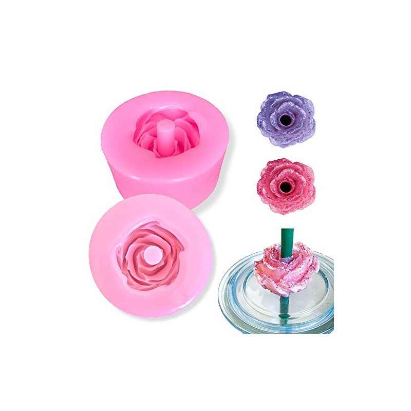 Rose Flower Straw Topper Silicone Template for Epoxy Resin (1 Piece)