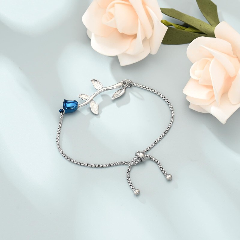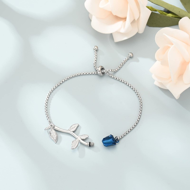 Rose Flower Urn Bracelet for Ashes for Women Man Stainless Steel Memorial Adjustable Ashes Link Bracelet Cremation Jewelry