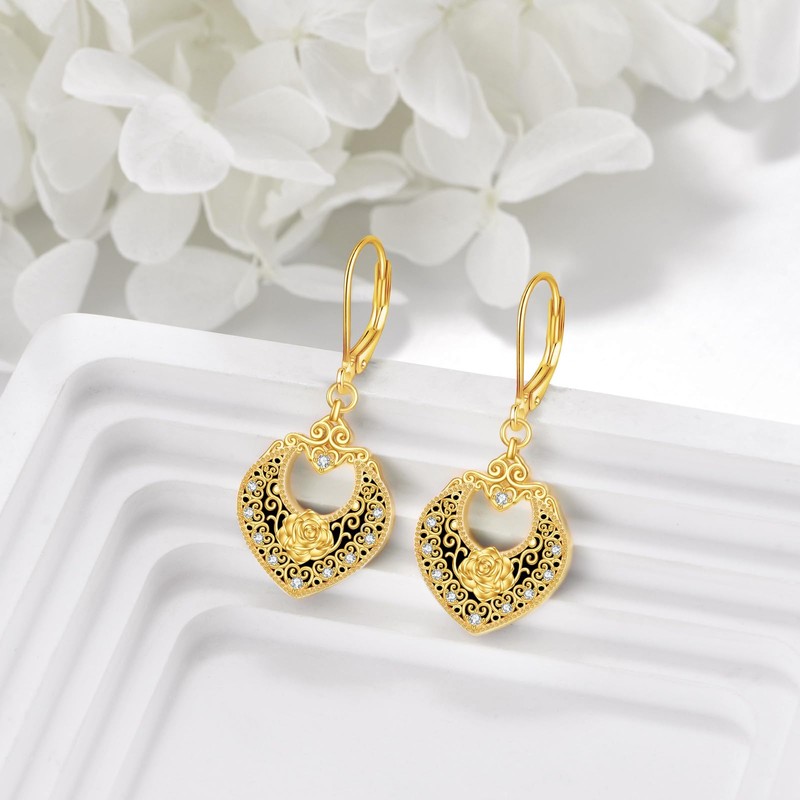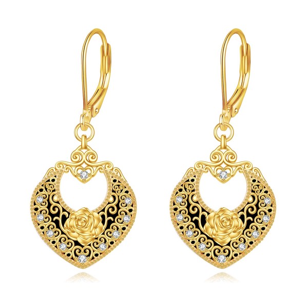Rose Form Ohrringe Sterling Silber Gold und Schwarz Nordic Filigran Teardrop Leverback Drop Ohrringe Schmuck Geschenke für Damen Mädchen