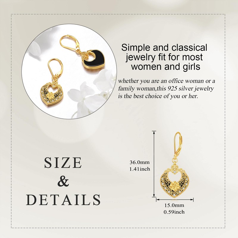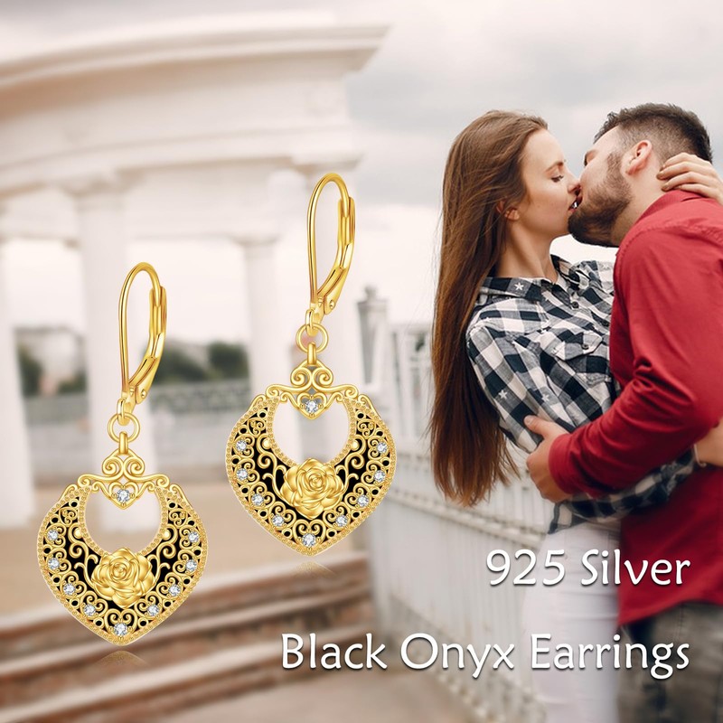 - ♥ Rose Ohrringe aus 925 Sterling Silber, um die Persönlichkeit von schwarzem Onyx hervorzuheben, ist eine Schicht von 24K Gold auf der Außenseite plattiert, Anlauf-resistent, keine Sorge über Reizung Ihrer Haut