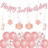 Rose Gold 3rd Birthday Decorations for Girls - Happy Birthday Banner, Hanging Swirls, Confetti Balloons for Three Years Old Party