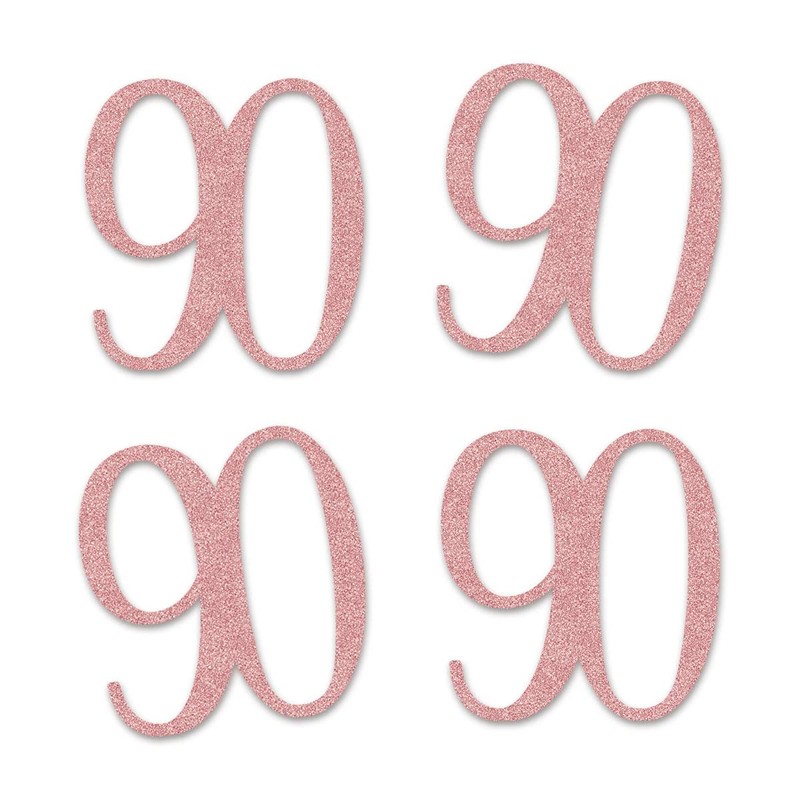 Rose Gold 90 Cut-Out Numbers, 90th Glitter Birthday Party Anniversary Decorations DIY Essentials