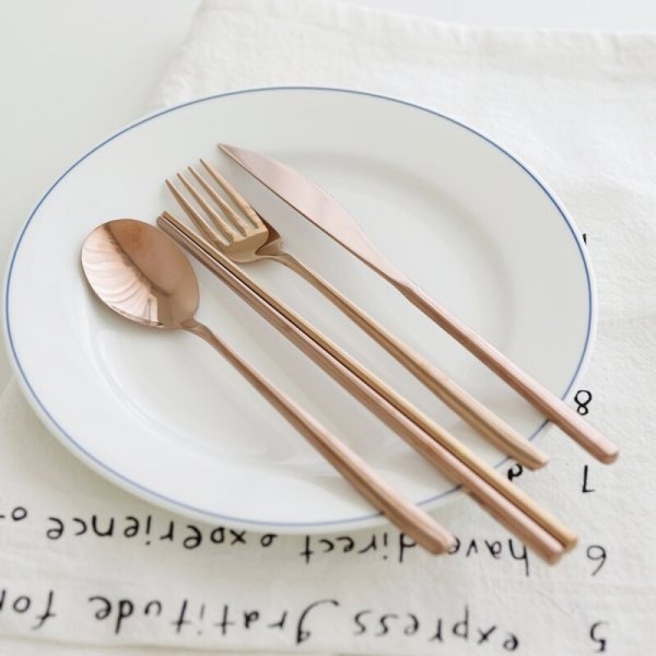 Rose gold cutlery set fork, knife, spoon, chopsticks / 로즈골드 양식기 커트러리 세트 포크 나이프 숟가락 젓가락