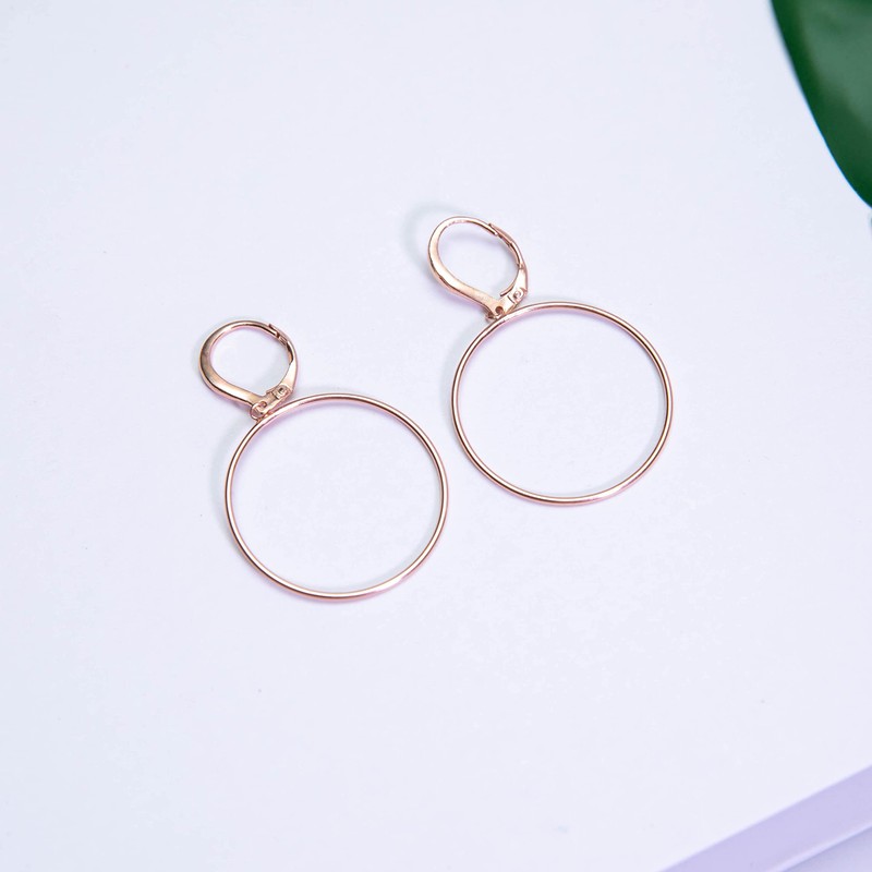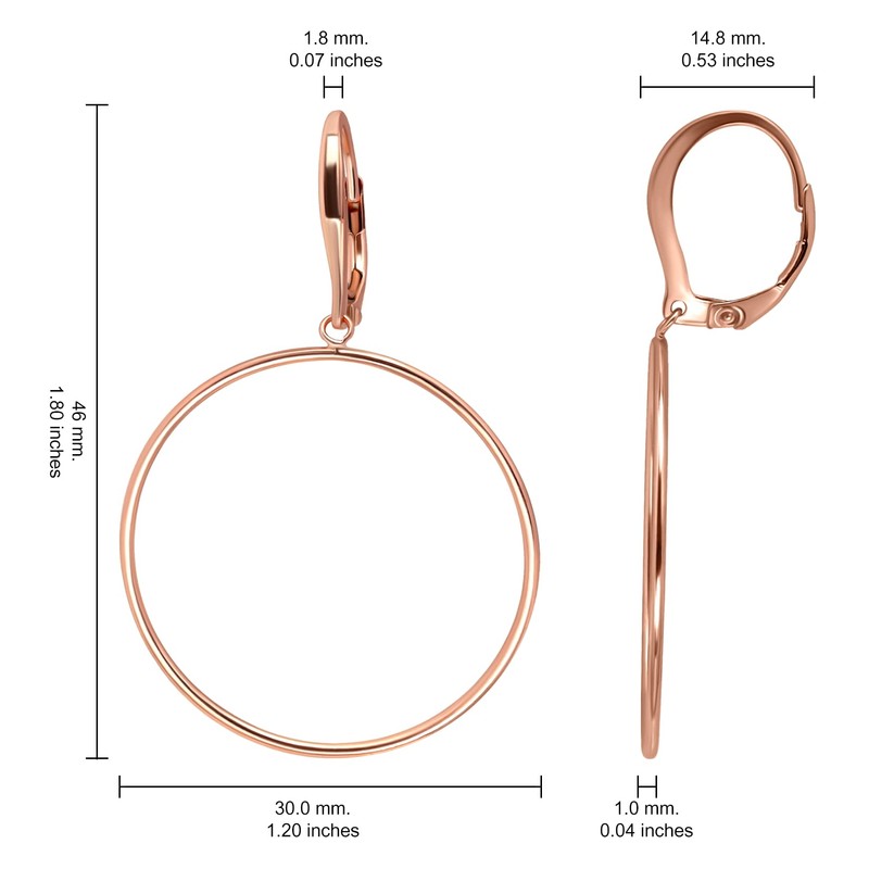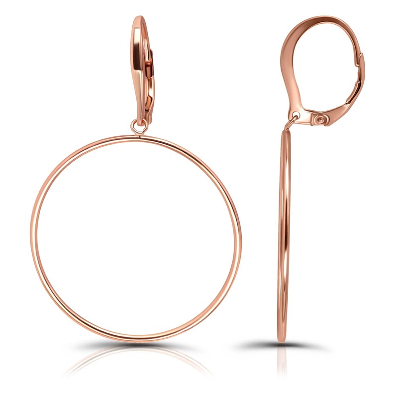 Rose Gold Flashed Sterling Silver Polished 30mm Frontal Hoop Circle Drop Dangle Leverback Earrings