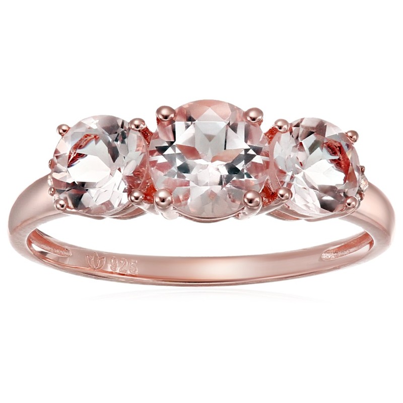 Rose Gold-plated Silver Morganite and Diamond Accented 3-stone Engagement Ring, Size 7